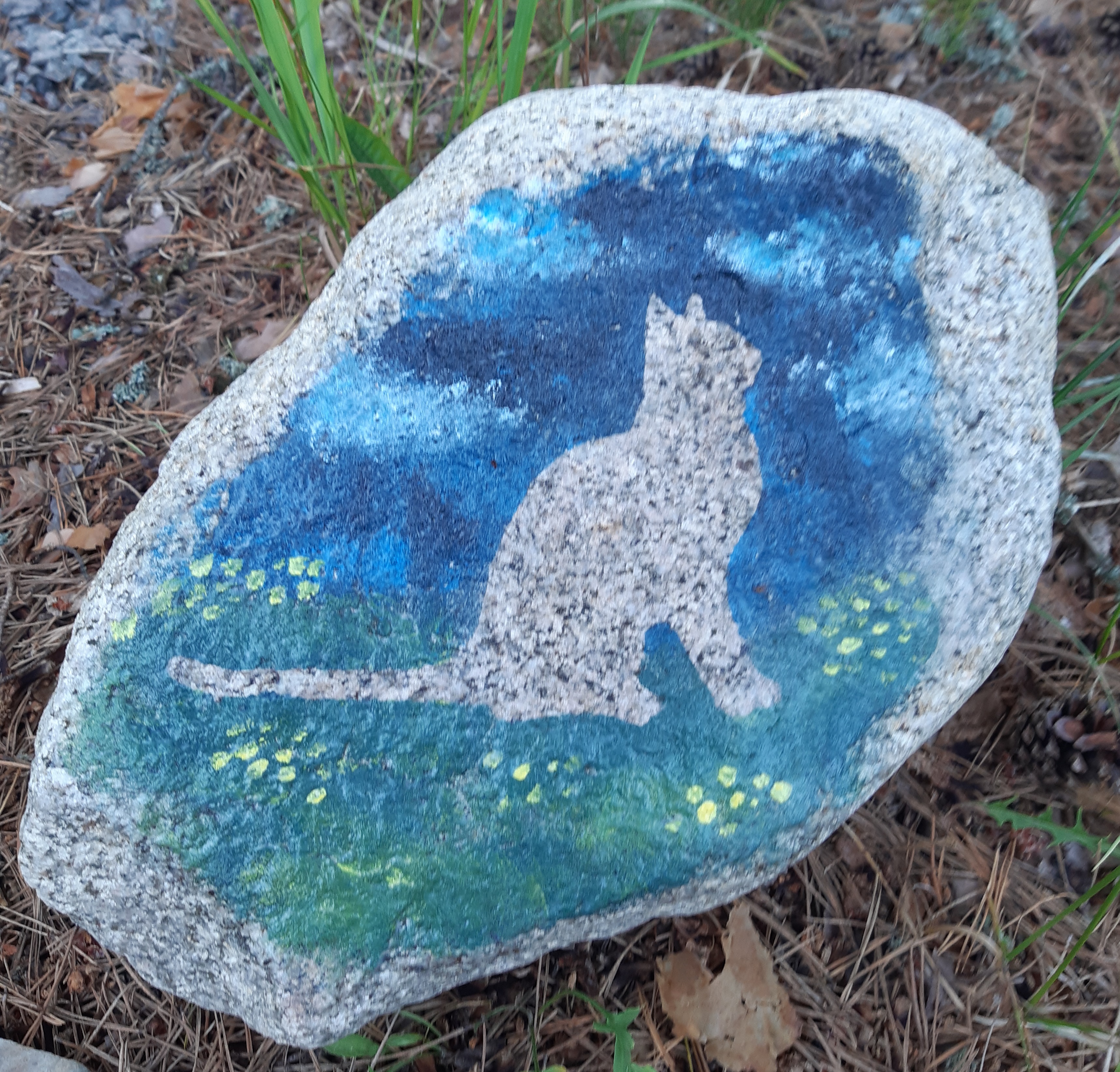 Olen onnellinen siitä, että Mörkö oli minun kissani ja niin kiitollinen kaikista hetkistä sen kanssa. Olo näin kuukauden jälkeen on surullisen haikea. Surutyönä maalasin Mörkölle muistokiven sen haudalle.